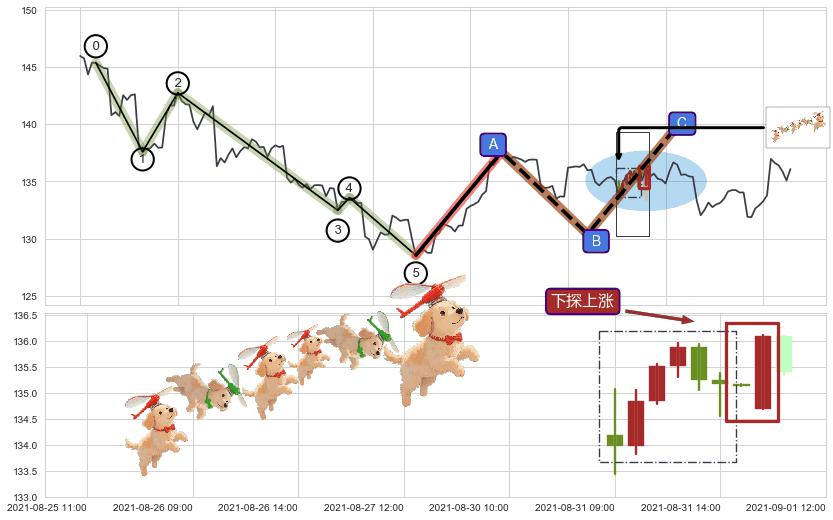 ➢ 最后的下跌趋势2021-08-02 12:00至2021-09-08 14:00:存在突破迹象,后续小反弹或者反转上涨