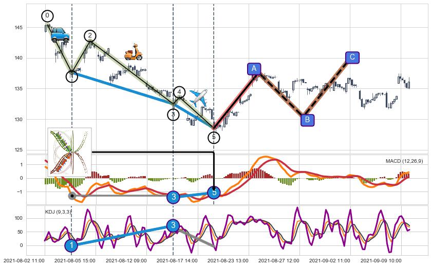 从2021-08-02 12:00至2021-08-09 09:00,共包含32个小时,阶段股价下跌-6.23%,阶段股价变动位移路程比: 1 : 3