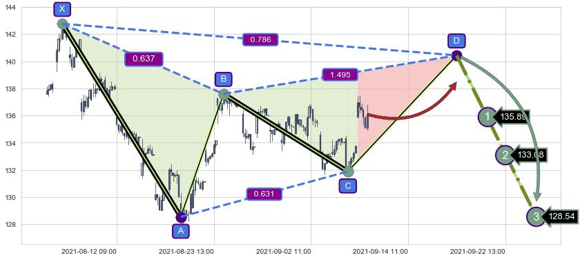 ➣ D点拟合预测价格140.43,距离最后交易收盘价格136.09相差 +3.19%