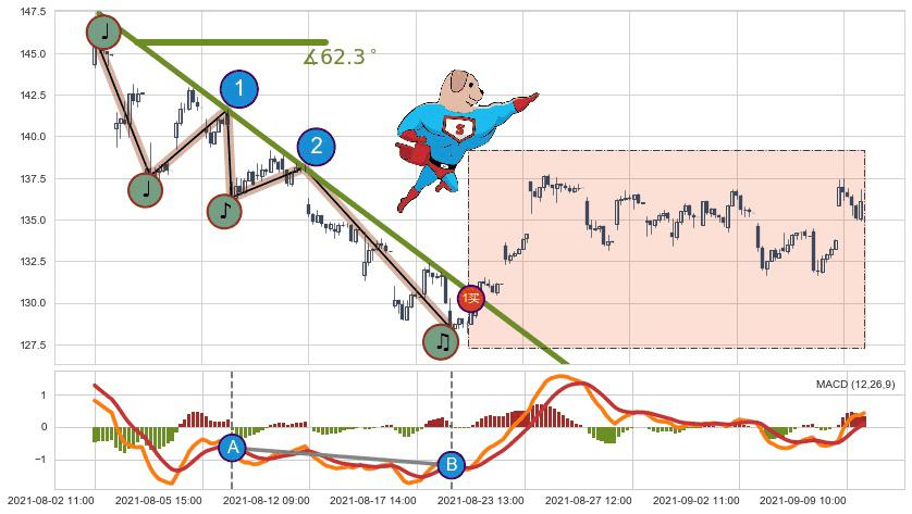 ➣ 2021-08-02 12:00-2021-09-08 14:00下跌趋势存在反转上涨[机会],其原下跌趋势的阻力位(113.06)已被突破[强支撑信号],原下跌趋势角度: 62.3˚