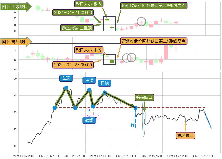 ➢ 2021-01-27 09:00形成:向下跳空【竭尽】缺口
