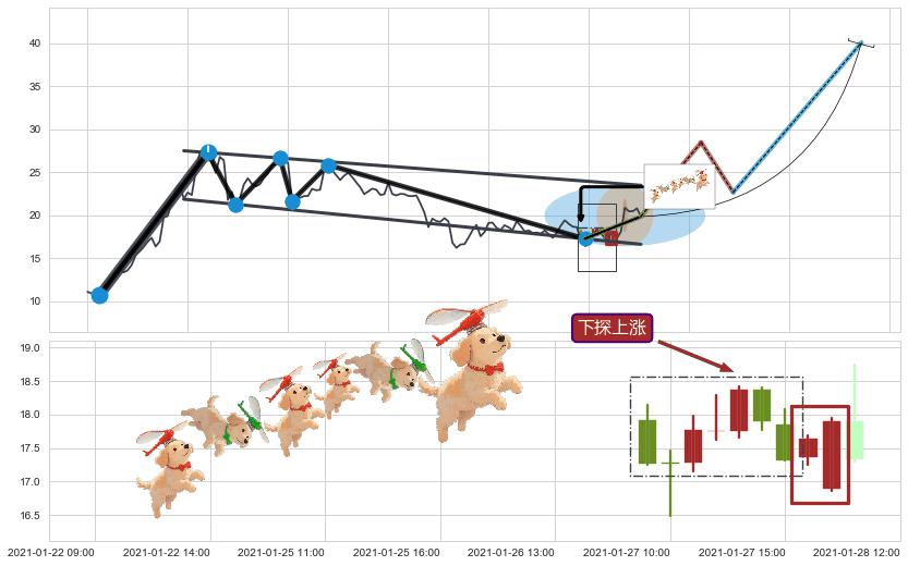 ➢ 最后的下跌趋势2021-01-08 12:00至2021-01-22 09:00:存在突破迹象,后续小反弹或者反转上涨