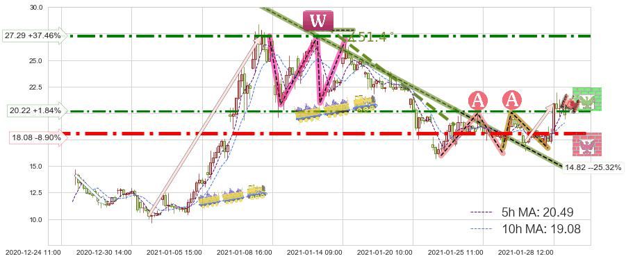 ♘ 阻力价格位27.29,可信任强度73.58%,距离最后交易2021-01-28 16:00形成的收盘价格19.85相差 +37.46%