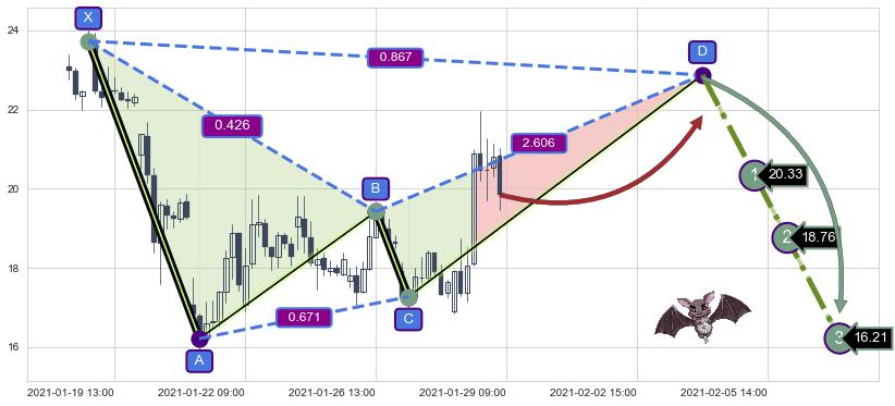 ➣ 未完成【蝙蝠】形态起点X: 01-19:09, 已到达C点: 01-27:10, 预测最终D点: 02-04:11, 共91交易小时