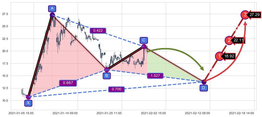 ➣ D点拟合预测价格22.87,距离最后交易收盘价格19.85相差 +15.23%