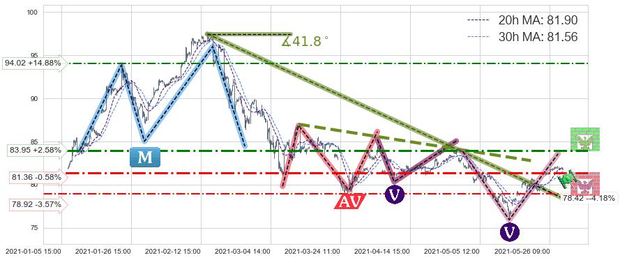 ♘ 阻力价格位83.95,可信任强度67.93%,距离最后交易2021-05-28 15:00形成的收盘价格81.84相差 +2.58%