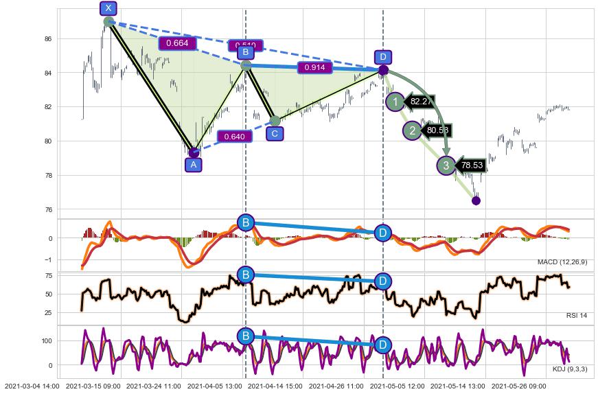 ➣ D点拟合预测价格89.94,距离最后交易收盘价格81.84相差 +9.89%