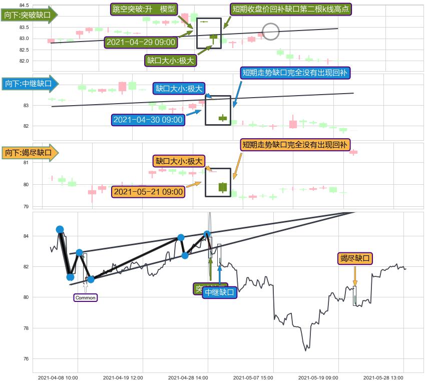 ➢ 2021-05-21 09:00形成:向下跳空【竭尽】缺口