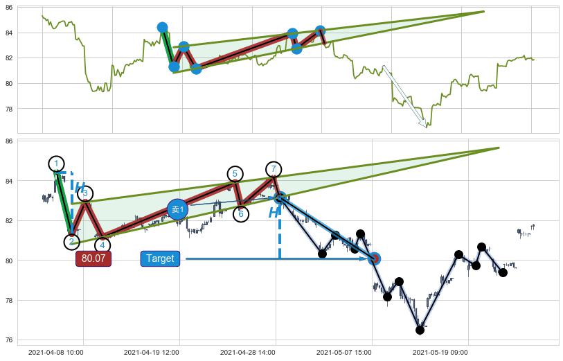 ➢ 最小中继整理跌幅→𝐇: 3.090 (𝐇楔型旗杆的长度:楔型起点→顶点)