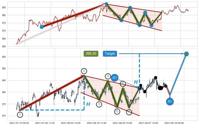 ➣ AI预测: 假定反转启动后, 第❸目标位置(09-24:14, 386.20)