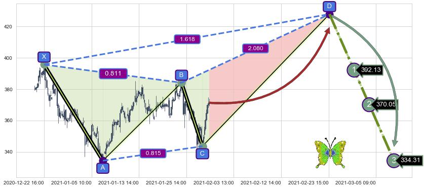 ➣ 未完成【蝴蝶】形态起点X: 12-22:16, 已到达C点: 01-27:16, 预测最终D点: 02-24:09, 共302交易小时