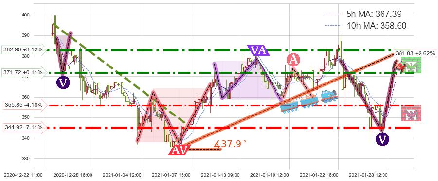 ♘ 阻力价格位382.90,可信任强度91.49%,距离最后交易2021-01-28 16:00形成的收盘价格371.30相差 +3.12%