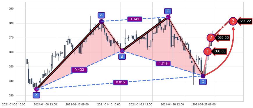 ➣ BC回撤位置在AB的114.1%,符合形态要求