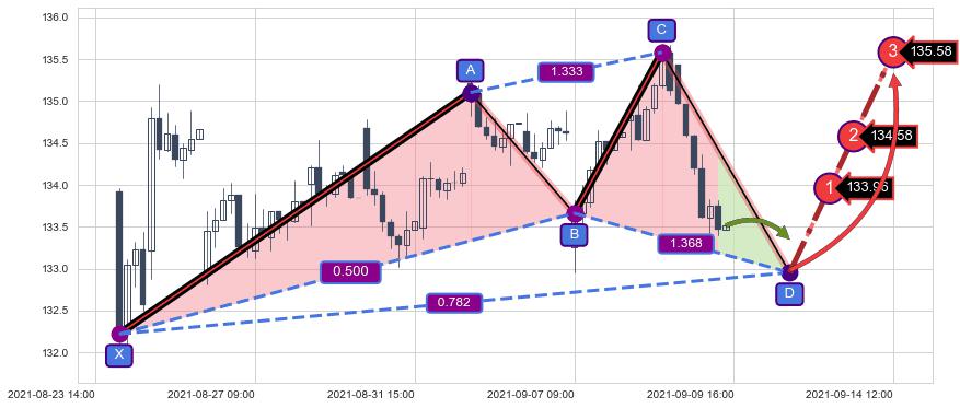 ➣ 未完成【赛福】形态起点X: 08-24:11, 已到达C点: 09-08:13, 预测最终D点: 09-10:15, 共84交易小时