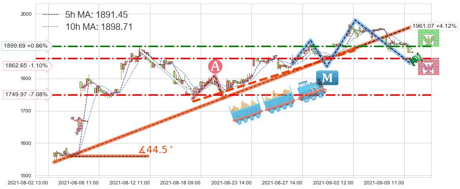 ♞ 5小时均线:1891.45,10小时均线:1898.71→ 快线<慢线