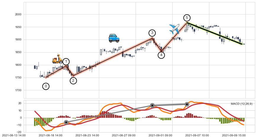 从2021-08-26 09:00至2021-09-09 15:00,共包含67个小时,阶段股价上涨2.92%,阶段股价变动位移路程比: 1 : 9