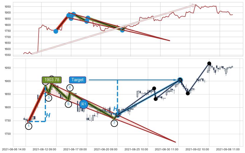 ➣ AI预测: 假定反转启动后, 第❶目标位置(09-13:12, 1905.98)