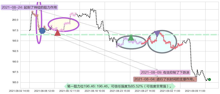 ♘ 阻力价格位196.46,可信任强度85.52%,距离最后交易2021-09-09 15:00形成的收盘价格185.69相差 +5.80%