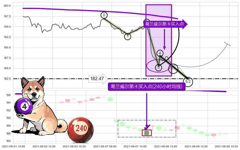 ♘ 在最后的下跌阶段2021-08-16 11:00至2021-09-09 15:00,存在 持续未破位的阻力位 ,阻力价格193.80,可信任强度80.67%,其距离最后价格185.69相差 +4.37%