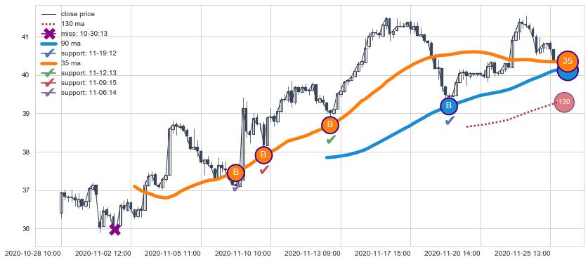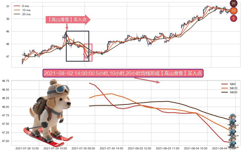 ⚀ 2021-07-29 14:00:00小时-2021-08-04 14:00:00小时显现 5小时-10小时-20小时均线 【高山滑雪】买入点 看多信号,后市看涨,买入