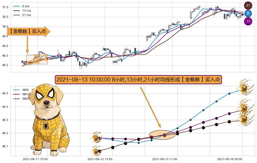 ⚀ 2021-08-13 10:00:00小时显现 8小时-13小时-21小时均线 【金蜘蛛】买入点 看多信号,后市看涨,买入