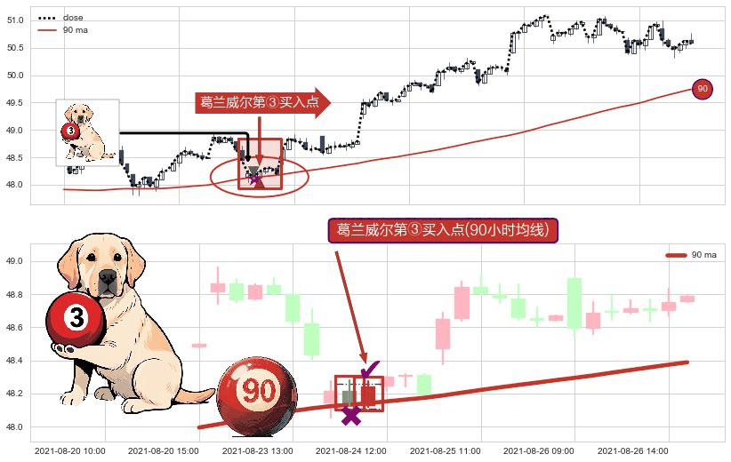 ⚀ 2021-08-24 11:00:00-小时显现 葛兰威尔均线 90小时均线 第③买入点 上升趋势的中继信号,后市看涨,买进信号
