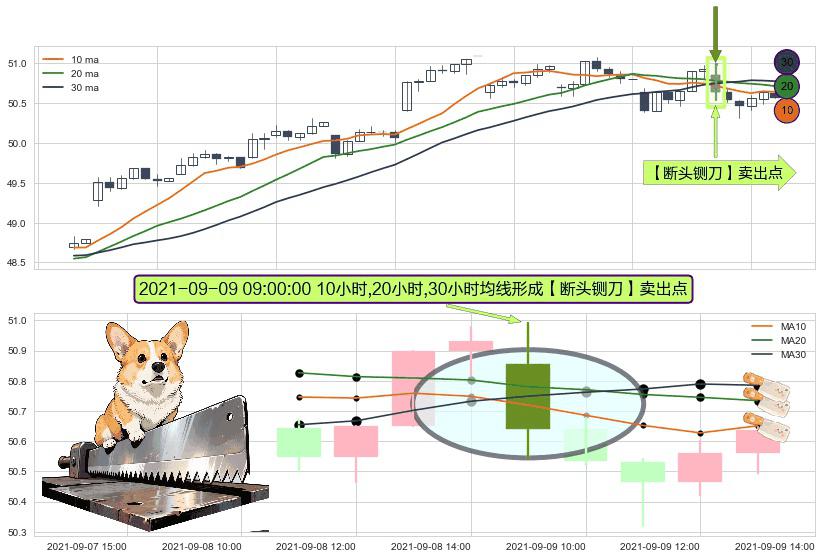 ⚀ 2021-09-09 09:00:00小时显现 10小时-20小时-30小时均线 【断头铡刀】卖出点 看空信号,后市看跌,卖出