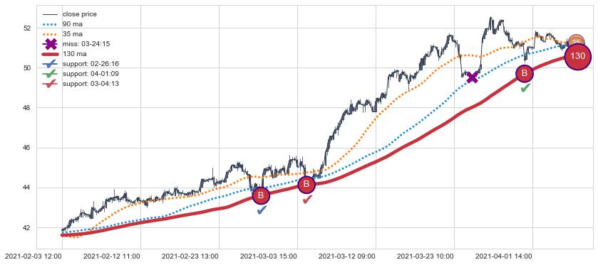 ⚁ 90小时均线 第③买入点 属于 均线服从 信号,属于趋势运行的【常态】即信号期望为上涨趋势的中继