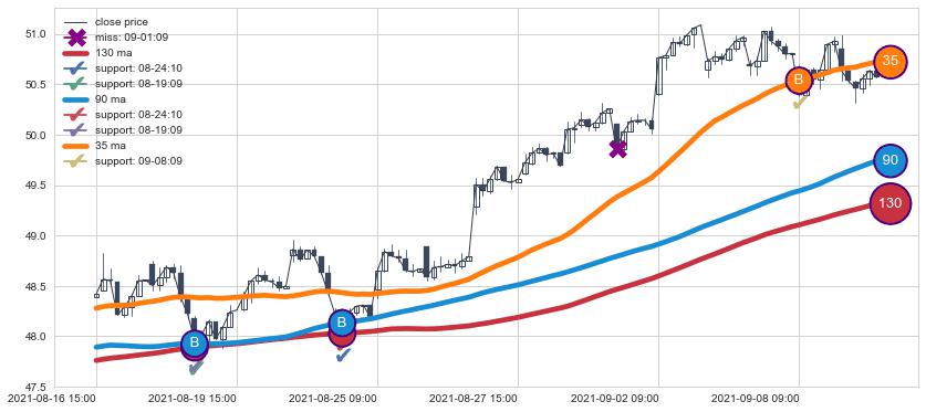 ⚂ 2021-08-24 10:00:00-小时均线向下破位,2021-08-24 11:00:00-小时重新上穿突破均线,均线支撑再次生效