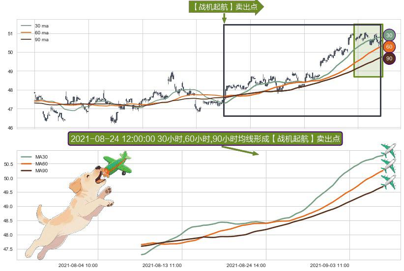 ⚀ 2021-08-09 15:00:00小时-2021-09-09 12:00:00小时显现 30小时-60小时-90小时均线 【战机起航】卖出点 看空信号,后市看跌,卖出