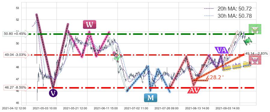 ♘ 阻力价格位50.80,可信任强度91.99%,距离最后交易2021-09-09 14:00形成的收盘价格50.57相差 +0.45%