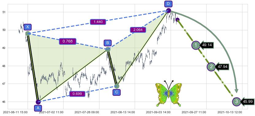 ➣ 已完成【蝴蝶】形态起点X: 06-11:15, 终点D: 09-02:15, 共395交易小时