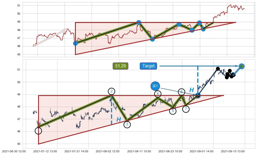 ➢ 09-02:14到达第❸价格目标位置51.06