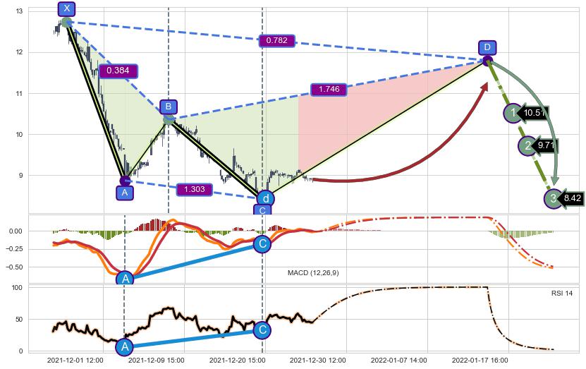 ➣ 未完成【赛福】形态起点X: 11-24:15, 已到达C点: 12-20:13, 预测最终D点: 01-14:11, 共252交易小时