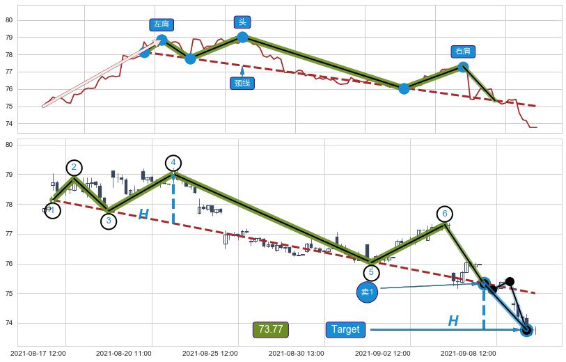 ➢ 【卖1】: 激进型 卖点→(09-08:09: 75.34 )形成突破头肩顶【反转】形态