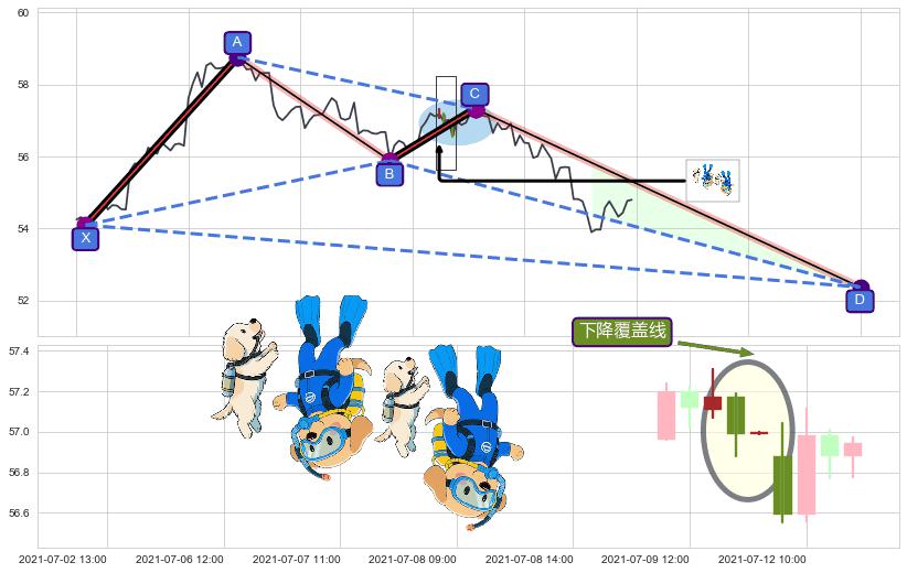 ➣ 未完成【螃蟹】形态起点X: 06-22:13, 已到达C点: 07-12:14, 预测最终D点: 07-29:10, 共165交易小时