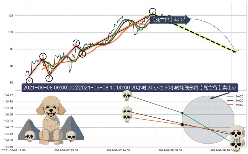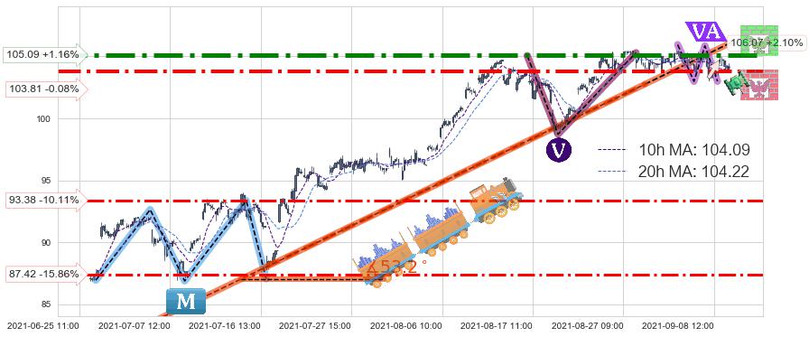 ♘ 阻力价格位105.09,可信任强度95.23%,距离最后交易2021-09-09 15:00形成的收盘价格103.89相差 +1.16%