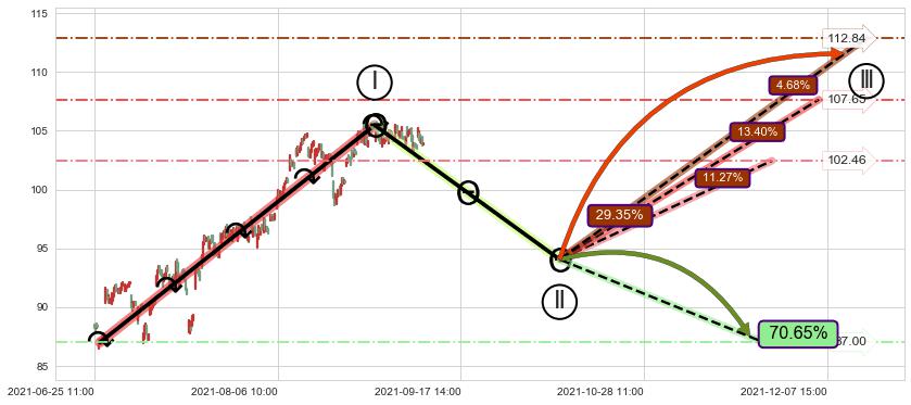 ➢ 循环浪继续向上【最低】位置(11-25:11, 102.46),匹配聚类样本比例38.39%, 可能性概率11.27%