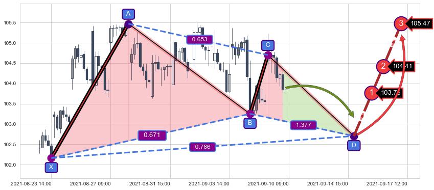 ➣ 未完成【伽利】形态起点X: 08-23:14, 已到达C点: 09-09:09, 预测最终D点: 09-15:10, 共102交易小时