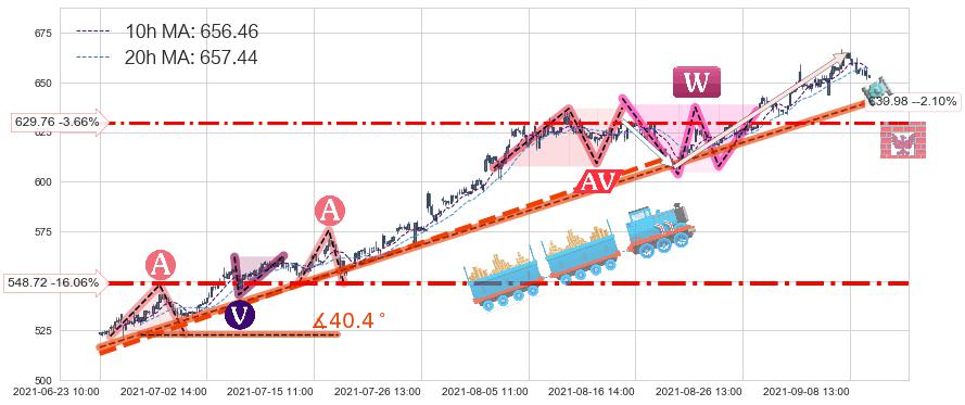 ♘ 支撑价格位629.76,可信任强度63.20%,距离最后交易2021-09-09 15:00形成的收盘价格653.72相差 -3.66%