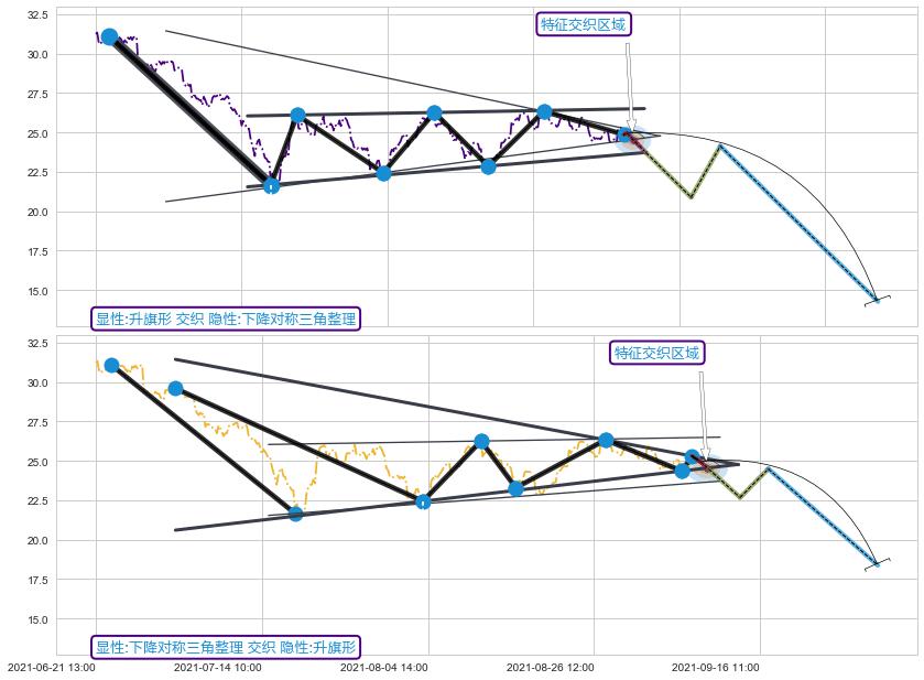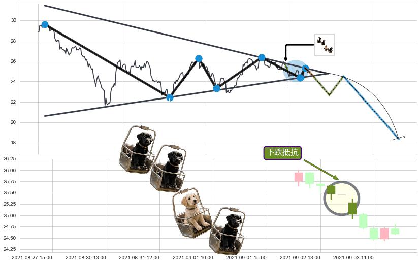 | 3 🅚:三只乌鸦 ➕ 📐:下降对称三角整理猜想突破点临近,临近关键支撑位,预期下沉突破下跌 ☞ 看空信号 ⇥ 【🅚线】交织【图形】⇥ 综合量化分数: 47 | > |