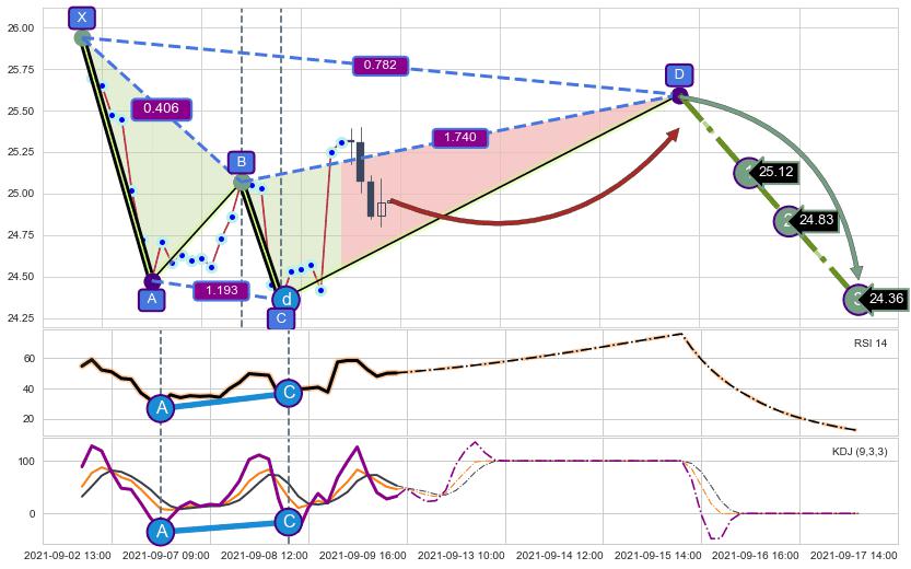 ➣ D点拟合预测价格25.60,距离最后交易收盘价格24.96相差 +2.55%