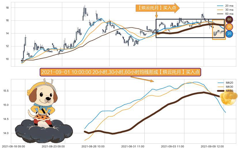 ⚀ 2021-08-24 13:00:00小时-2021-09-09 13:00:00小时显现 20小时-30小时-60小时均线 【烘云托月】买入点 看多信号,后市看涨,买入