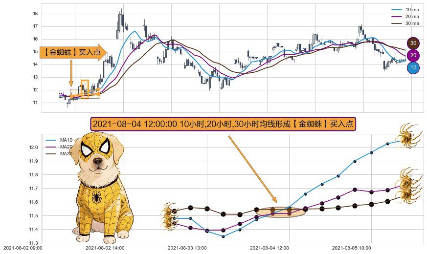 ⚀ 2021-08-04 12:00:00小时显现 10小时-20小时-30小时均线 【金蜘蛛】买入点 看多信号,后市看涨,买入