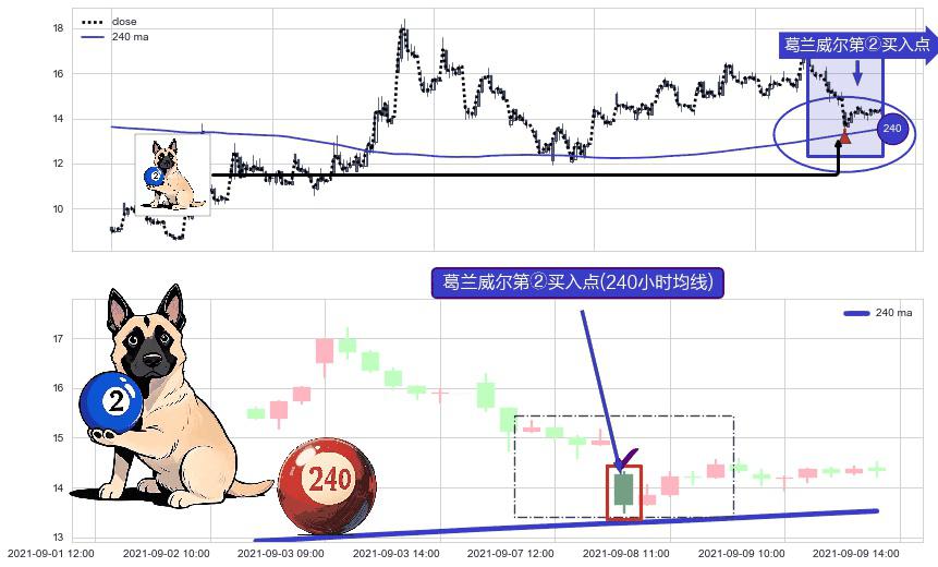 ⚀ 2021-09-08 09:00:00-小时显现 葛兰威尔均线 240小时均线 第②买入点 上升趋势的中继信号,后市看涨,买进信号