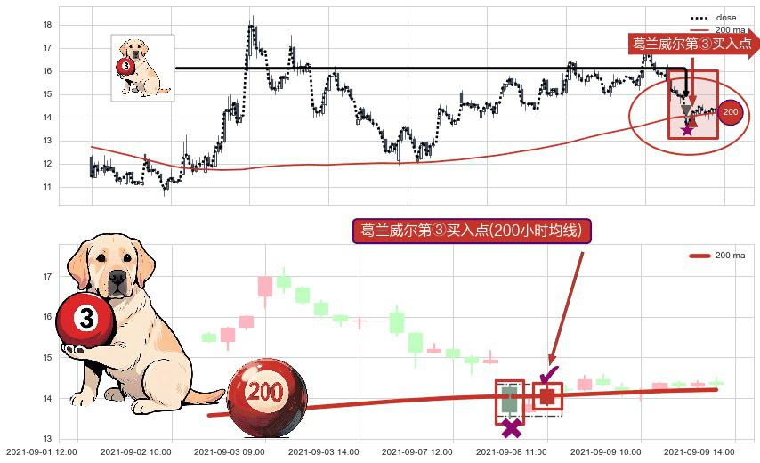 ⚀ 2021-09-08 11:00:00-小时显现 葛兰威尔均线 200小时均线 第③买入点 上升趋势的中继信号,后市看涨,买进信号
