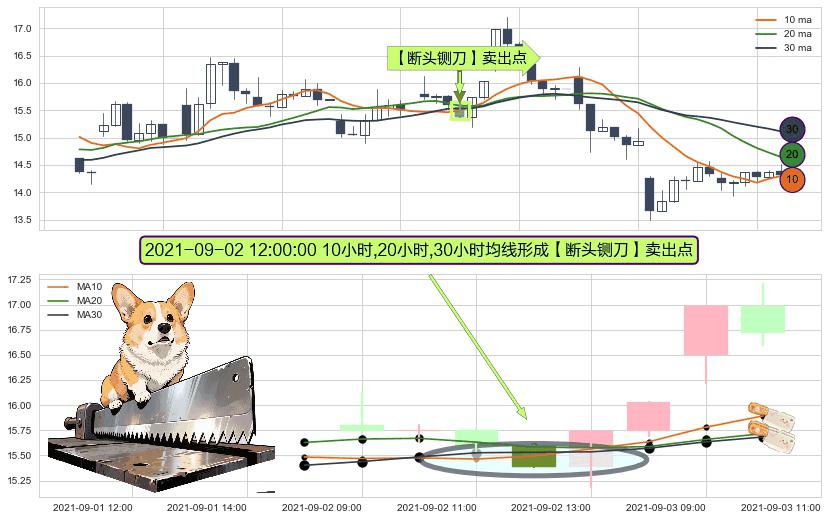 ⚀ 2021-09-02 12:00:00小时显现 10小时-20小时-30小时均线 【断头铡刀】卖出点 看空信号,后市看跌,卖出