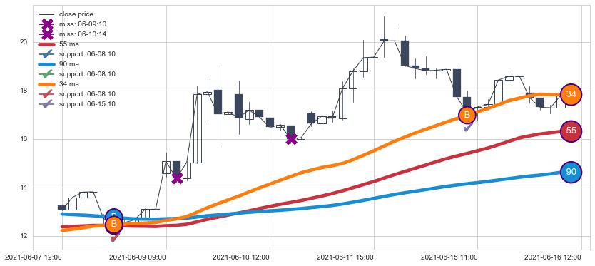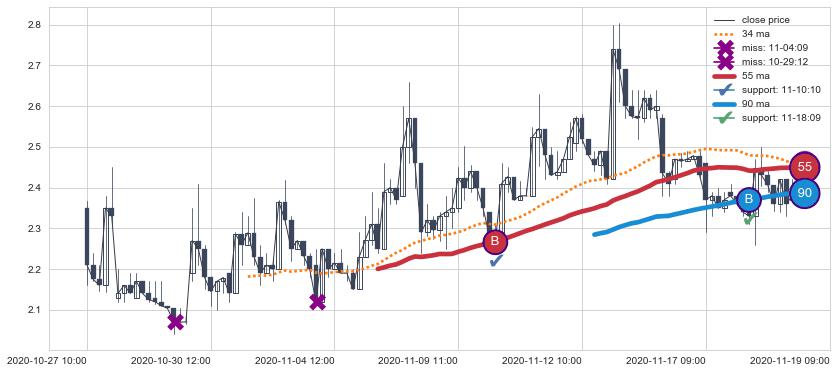 ⚄ 价格在均线获取支撑后再次向上反弹了【极短】距离, 第②买入点 支撑效果【等待验证】