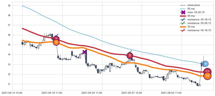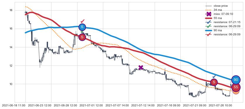 ⚀ 中期均线MA21下穿长期均线MA34形成的交叉是标准 死亡交叉