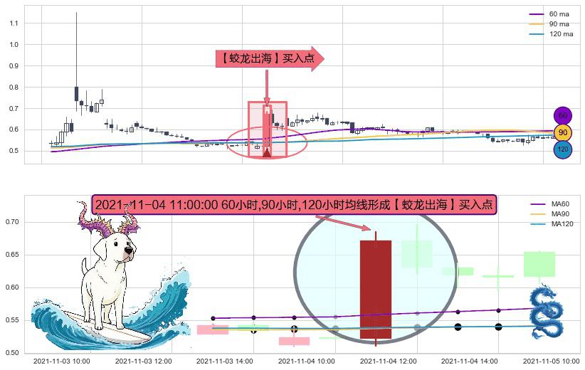⚀ 2021-11-04 11:00:00小时显现 60小时-90小时-120小时均线 【蛟龙出海】买入点 看多信号,后市看涨,买入